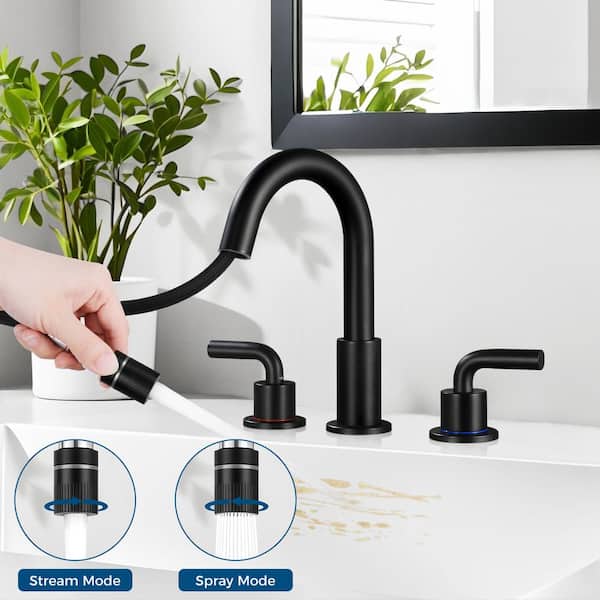 8 in. Widespread Double Handle Bathroom Faucet with Pull Out Sprayer, Bathroom Sink Faucet in Matte Black