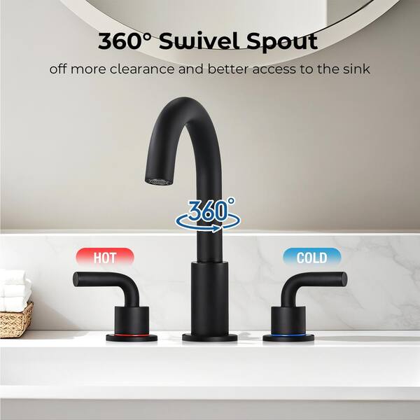 8 in. Widespread Double Handle Bathroom Sink Faucet with 360° Swivel Spout in Matte Black