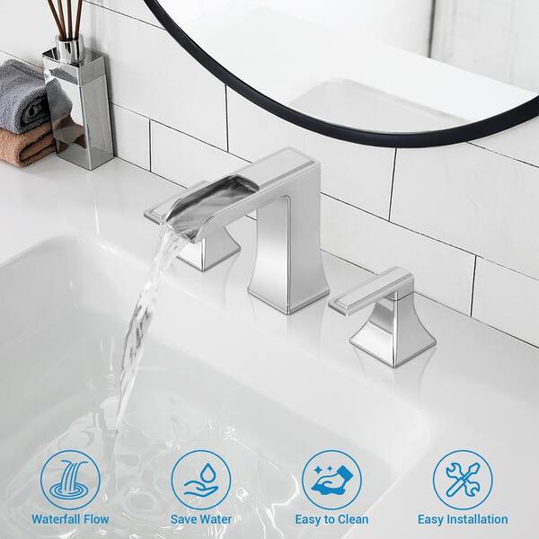 8 in. Widespread Double-Handle Waterfall Bathroom Faucet in Polish Chrome