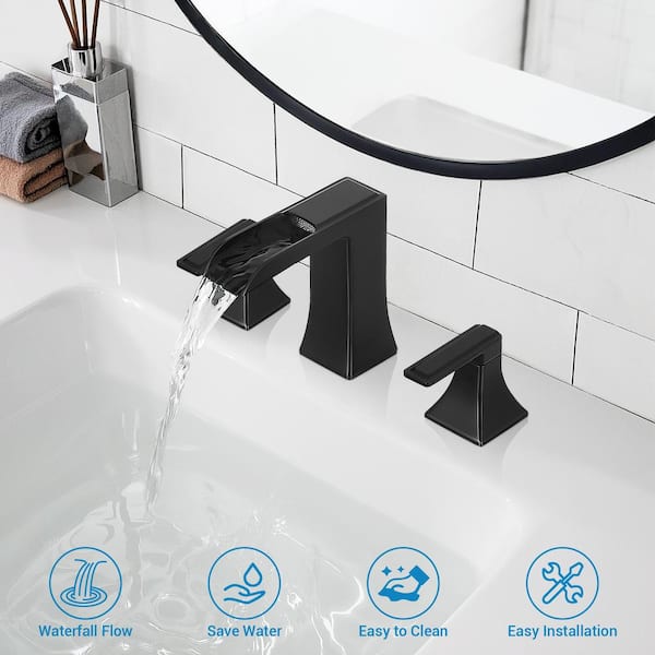 8 in. Widespread Double-Handle Waterfall Bathroom Faucet with Pop-Up Drain in Matte Black