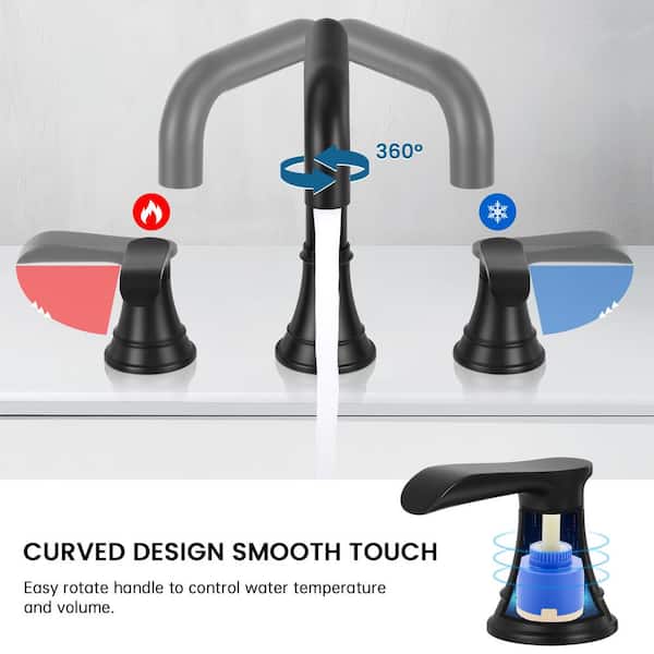 8 in. Widespread Double-Handle Waterfall Bathroom Faucet with Pop-Up Drain in Matte Black