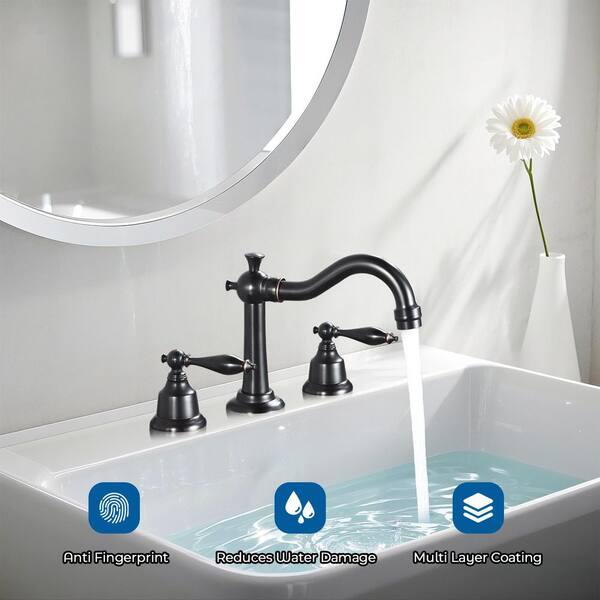 Double Handle 8 in. Widespread Bathroom Faucet 3 Hole Waterfall Bathroom Sink Faucet in Oil Rubbed Bronze (2-Pack)