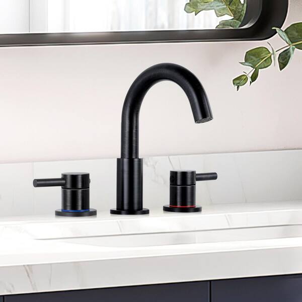 Double Handle 8 in. Widespread High Arc Bathroom Faucet with Pop-up Drain and 360 Swivel Spout in Oil Rubbed Bronze