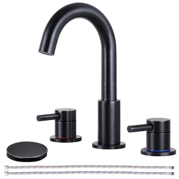 Double Handle 8 in. Widespread High Arc Bathroom Faucet with Pop-up Drain in Oil Rubbed Bronze