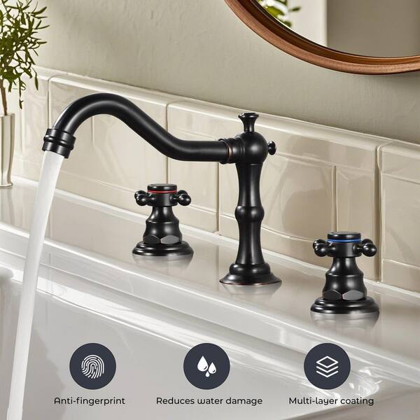 Double Handles 8 in. Widespread Bathroom Faucet 3-Hole Waterfall Sink Faucet with Pop-Up Drain in Oil Rubbed Bronze