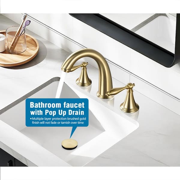 Double handle 8 in. Widespread Bathroom Faucet 3 Hole Bathroom Sink Faucet in Brushed Gold (2-Pack)