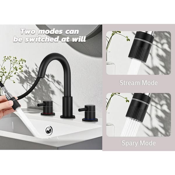 Double handle 8 in. Widespread Bathroom Faucet 3 Hole Bathroom Sink Faucet in Matte Black