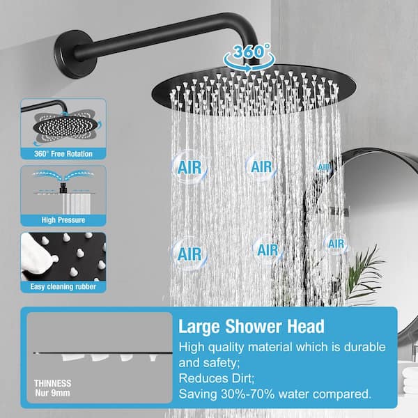 Rainfall Single Handle 2-Spray Shower Faucet 1.8 GPM with High Pressure in Matte Black