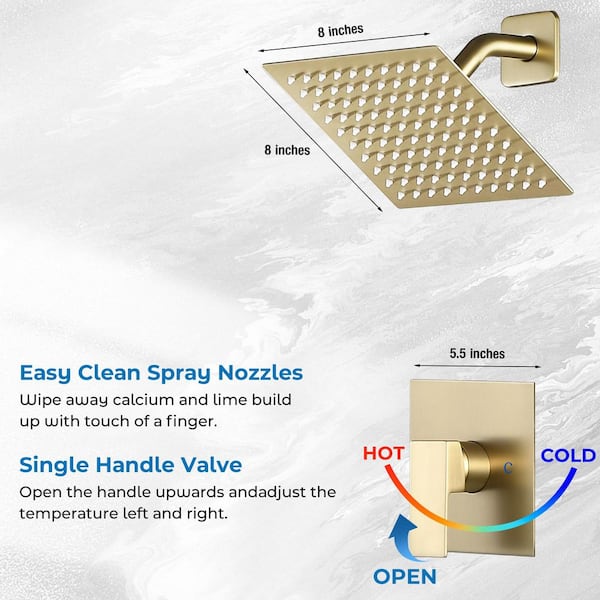 Single Handle 1-Spray Shower Faucet 1.75 GPM with 8 in. High Pressure Rain Shower Head in Brushed Gold