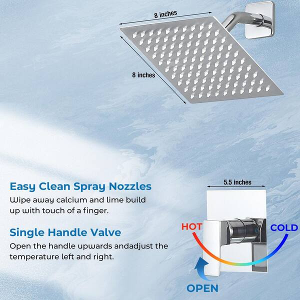 Single Handle 1-Spray Shower Faucet 1.75 GPM with 8 in. High Pressure Rain Shower Head in Polish Chrome