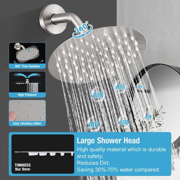Single Handle 2-Spray 8 in Round Shower Faucet 2.2 GPM with Pressure Balance in Brushed Nickel