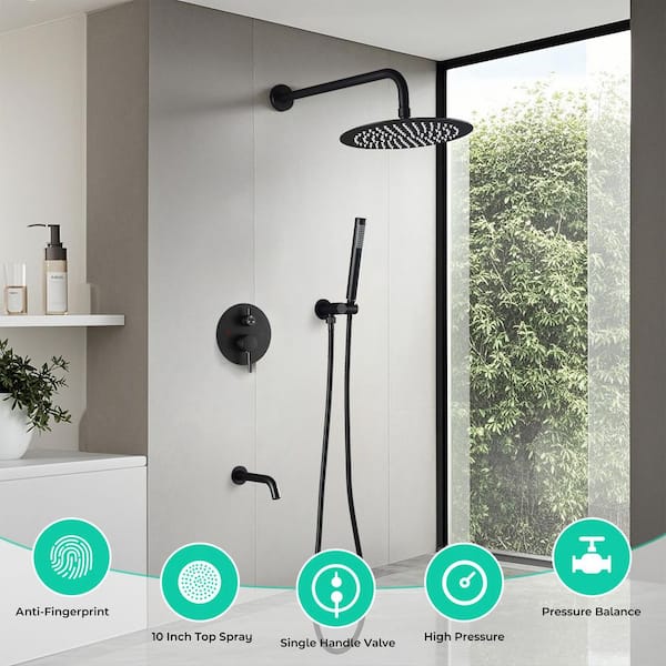Single Handle 3-Spray 10 in. Shower Faucet 2.0 GPM with Pressure Balance, Anti Scald in Matte Black
