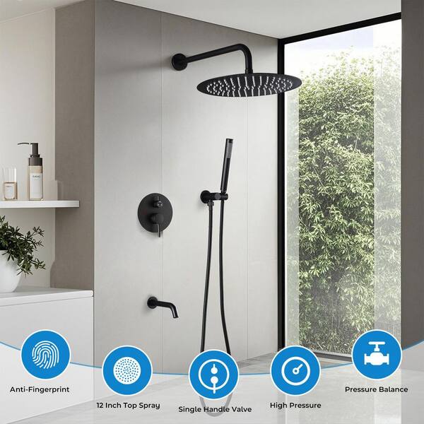 Single Handle 3-Spray 12 in. Shower Faucet 2.0 GPM with Pressure Balance, Anti Scald in Matte Black