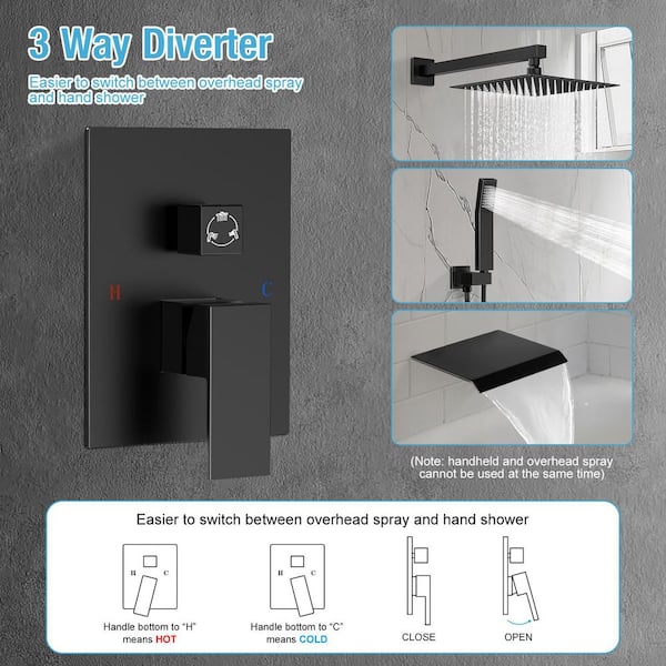 Single Handle 3-Spray Pattern 10 in. Wall Mount Shower Set Tub and Shower Faucet 1.8 GPM in Black (Valve Included)