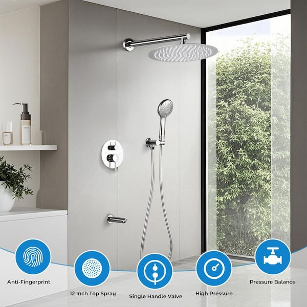 Single Handle 3-Spray Shower Faucet 2.0 GPM with Adjustable Flow Rate Tub Spout in Polish Chrome
