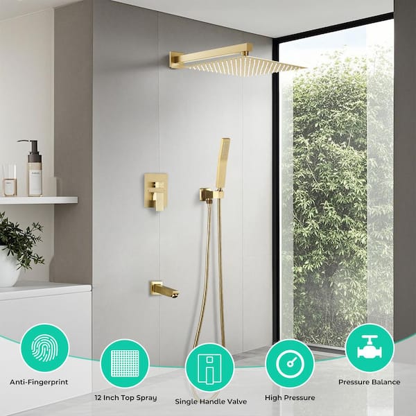 Single Handle 3-Spray Shower Faucet 2.0 GPM with Spout with 360° Swivel in Brushed Gold