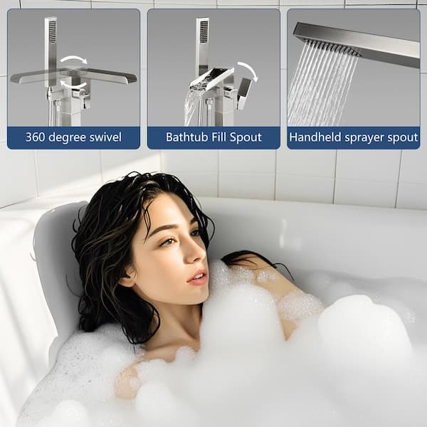 Single-Handle Claw Foot Tub Faucet Freestanding Floor Mount Roman Tub Faucet with Hand Shower in. Brushed Nickel