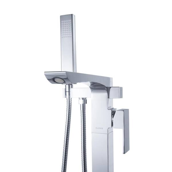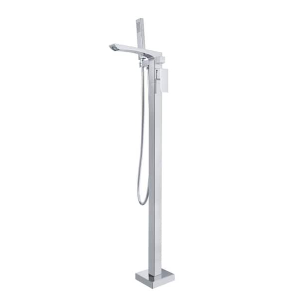 Single-Handle Claw Foot Tub Faucet Freestanding Floor Mount Roman Tub Faucet with Hand Shower in Chrome