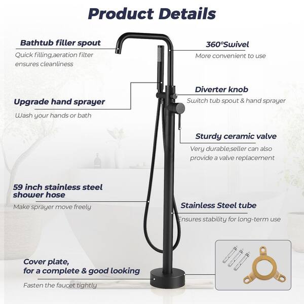 Single-Handle Claw Foot Tub Faucet Freestanding Floor Mount Roman Tub Faucet with Hand Shower in Matte Black