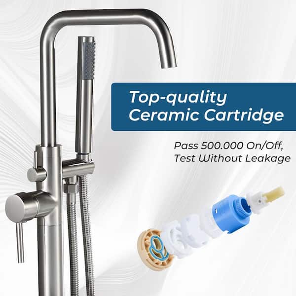 Single-Handle Floor-Mount Roman Tub Faucet with Hand Shower in Brushed Nickel