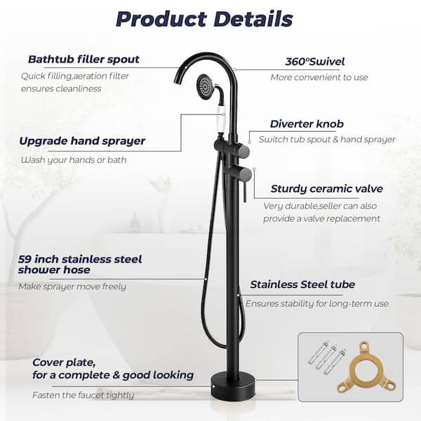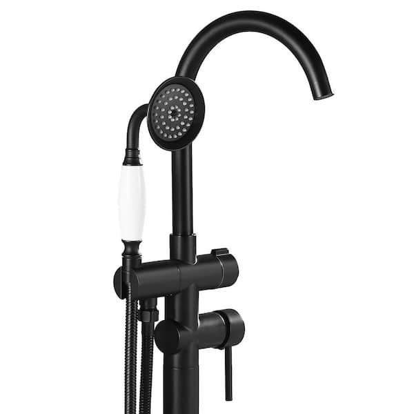 Single-Handle Floor-Mount Roman Tub Faucet with Hand Shower in Matte Black