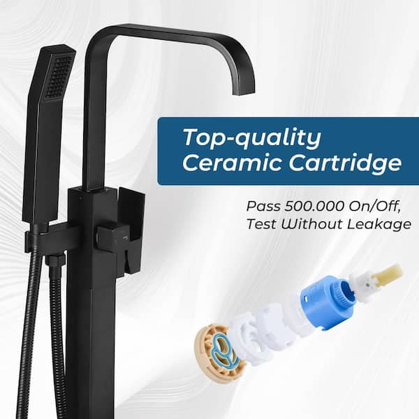 Single-Handle Floor-Mount Roman Tub Faucet with Hand Shower in Matte Black