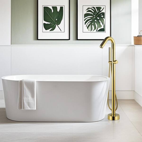 Single-Handle Freestanding Floor Mount Roman Tub Faucet Bathtub Filler with Hand Shower in Brushed Gold