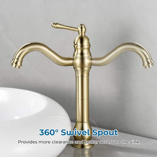 Single Hole Single-Handle Waterfall Vessel Sink Faucet with Pop-Up Drain in Brushed Gold