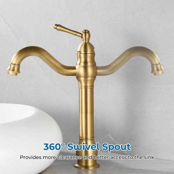 Single Hole Single-Handle Waterfall Vessel Sink Faucet with Pop-up Drain in Antique Brass (2-Pack)