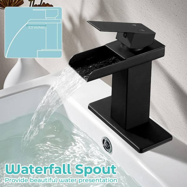 Waterfall Single Hole Single-Handle Low-Arc Bathroom Faucet in Matte Black
