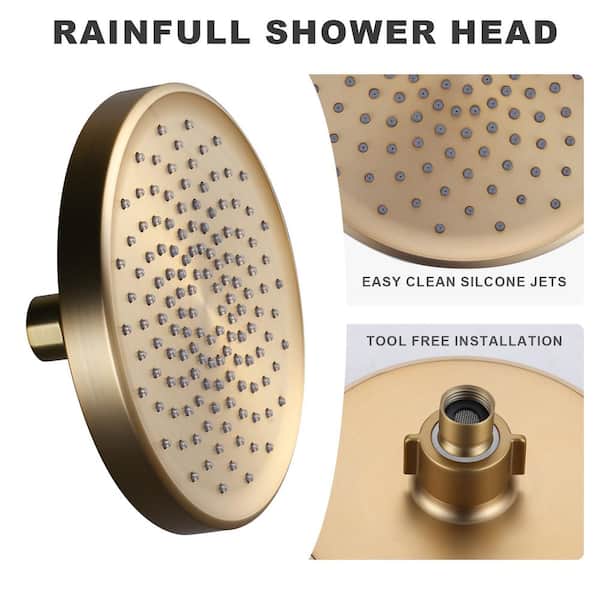 1-Spray Patterns with 1.8 GPM 6 in. Wall Mount Rain Fixed Shower Head in Gold