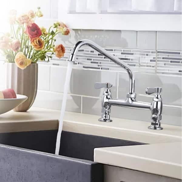 10 in. Double Handle Deck Mount Standard Kitchen Faucet in Chrome