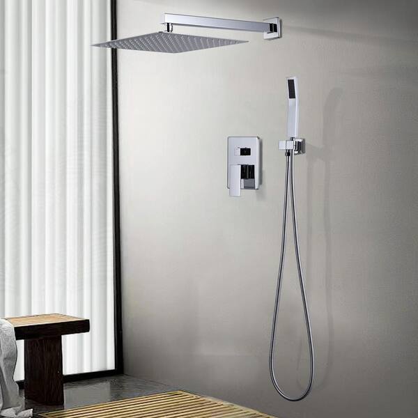 12 in. Single Handle 2-Spray Shower Faucet 1.8 GPM with Pressure Balance Valve in Polished Chrome