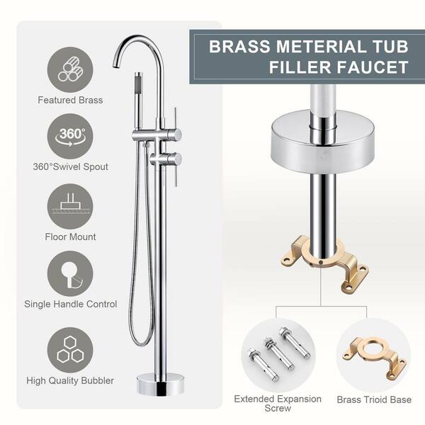 2-Handle Freestanding Tub Faucet with Hand Shower in Chrome