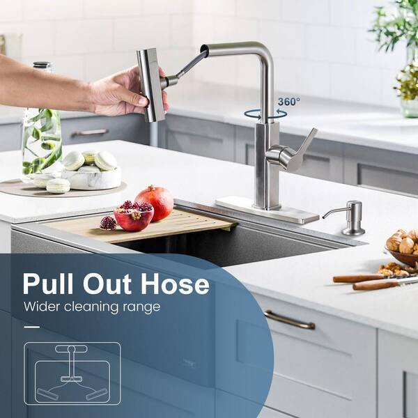 3 Modes Single Handle Pull Down Sprayer Kitchen Faucet with Soap Dispenser in Brushed Nickel