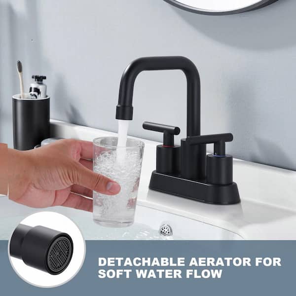 4 in. Centerset Double Handle Bathroom Faucet with Pop-Up Drain and Supply Lines in Stainless Steel Matte Black