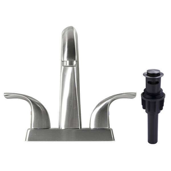 4 in. Centerset Double Handle Gooseneck High Arc Bathroom Faucet in Brushed Nickel