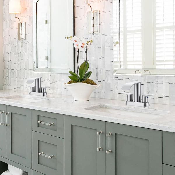 4 in. Centerset Double Handle WaterFall Bathroom Faucet with Drain Kit Included in Brushed Nickel