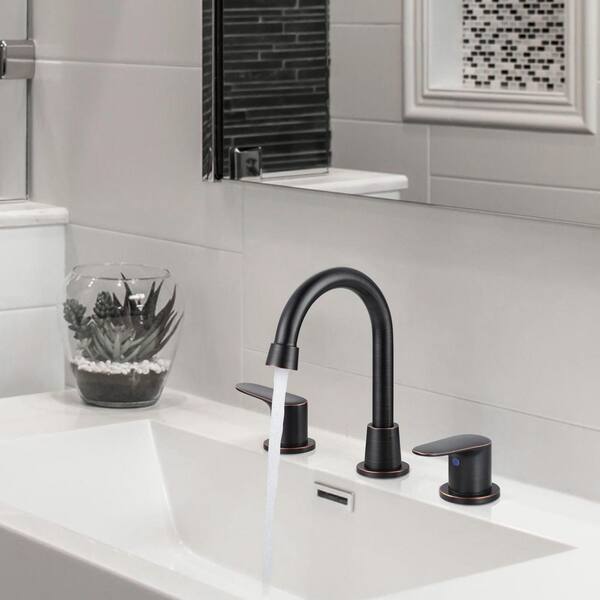 8 in. Widespread Double Handle Bathroom Faucet with Drain Kit Inclued in Oil Rubbed Bronze