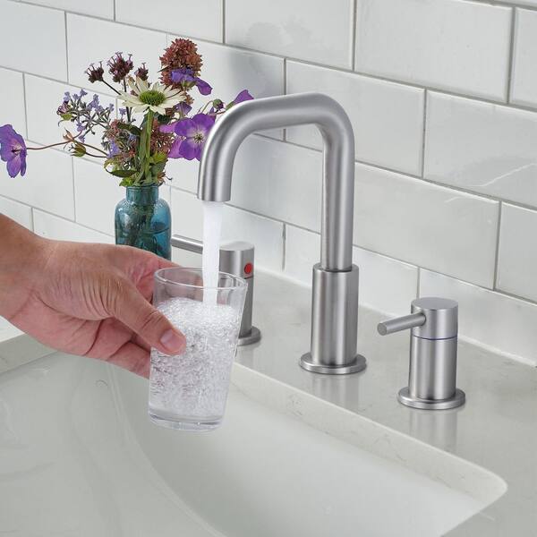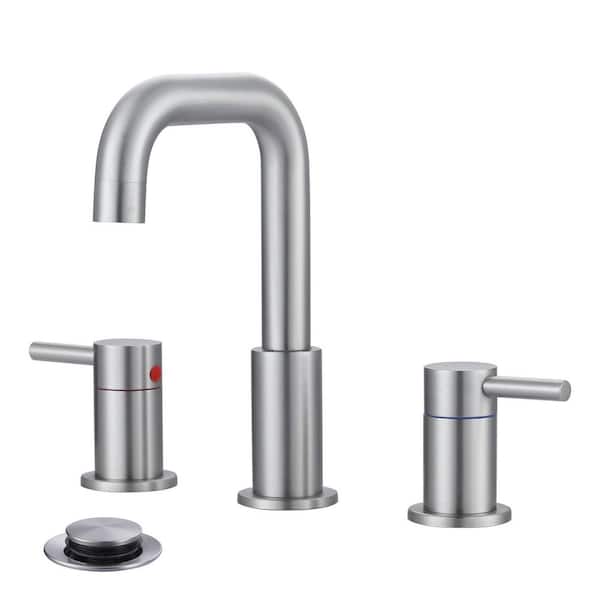 8 in. Widespread Double Handle Bathroom Faucet with Pop-up Drain Included in Brushed Nickel