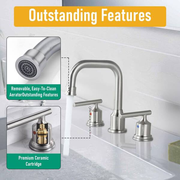 8 in. Widespread Double Handle High Arc Bathroom Faucet in Nickel 2-PACK