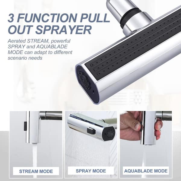 Chrome 3-Mode 13.5 in. H 360° swivel Pull-Out Sprayer Kitchen Faucet with Separate Soap Dispenser