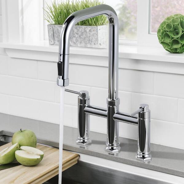 Double Handle Bridge Kitchen Faucet in Polished Chrome