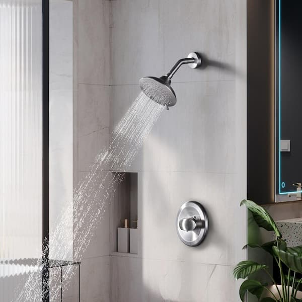 Modern Single Handle 5-Spray Shower Faucet 1.8 GPM with Pressure Balance in. Brushed Nickel (Valve Included)