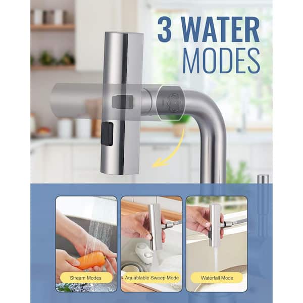 • Pull-out sprayer extends up to 17 inches and offers 22 in reach