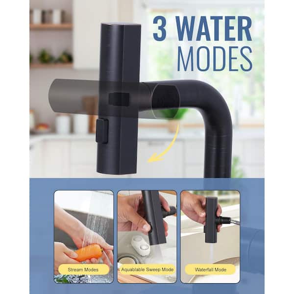 Modern Single Handle Bar Faucet Deckplate Included with Pull-Out Sprayer in Oil Rubbed Bronze