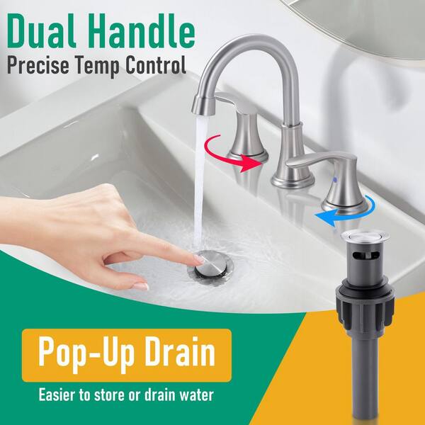 Noble 8 in. Widespread Double Handle Bathroom Sink Faucet in Brushed Nickel