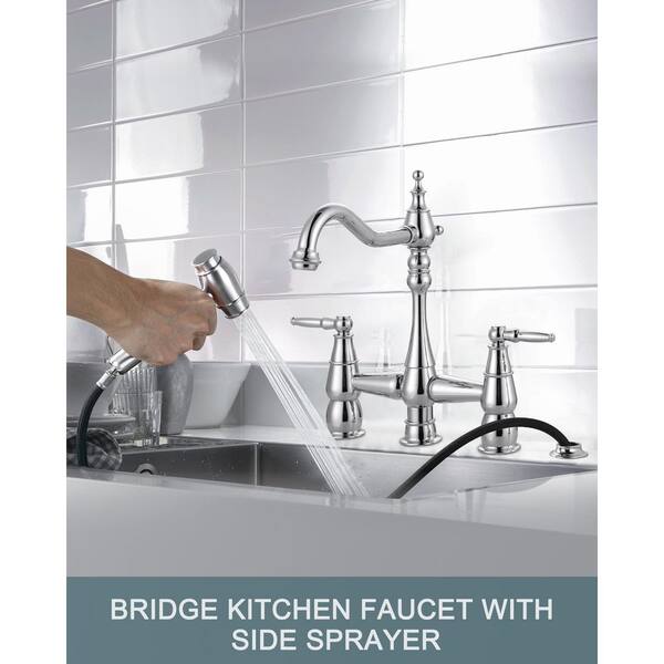 Quaint Double Handle Vintage Bridge Kitchen Faucet-Side Spray in Chrome