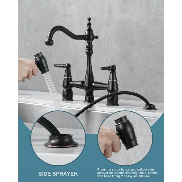 Quaint Double Handle Vintage Bridge Kitchen Faucet-Side Spray in Oil Rubbed Bronze
