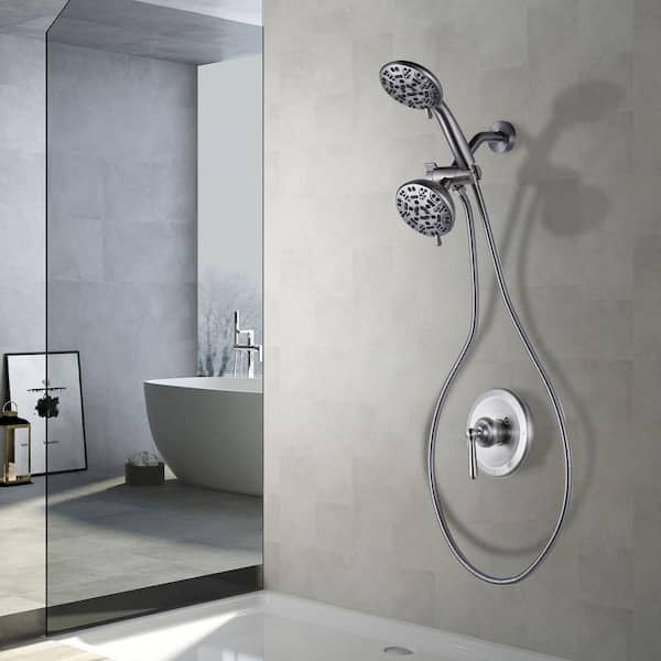 Relax 7-Spray Wall Mount 4.5 in. Dual Shower Head and Handheld Shower Head 1.8 GPM in Brushed Nickel